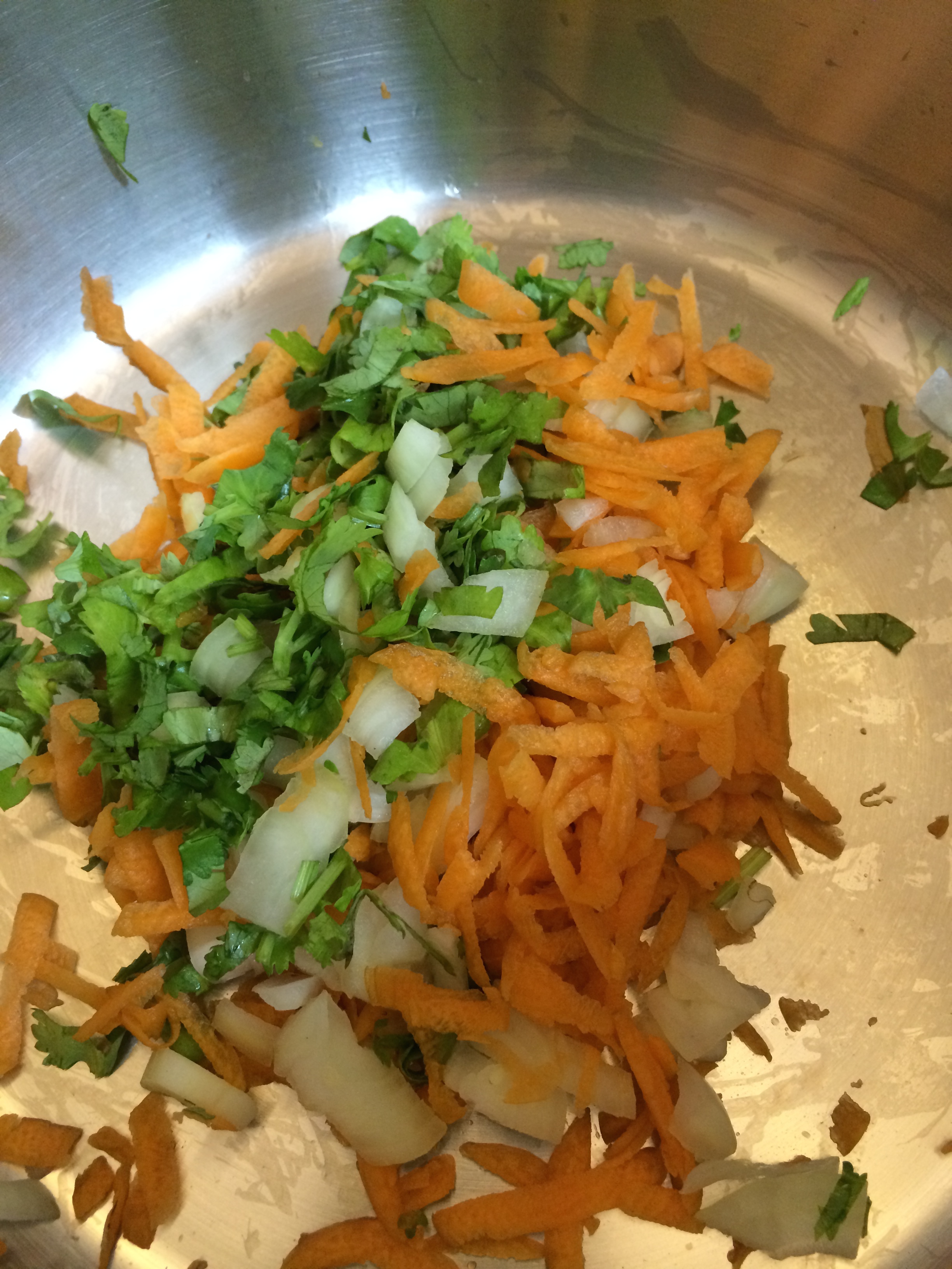 I used: kangkung (water spinach), pak choi and Thai basil. All three leaves are intensely green, which means laden with nutrients.