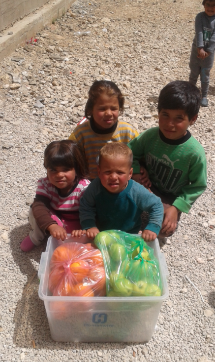 What I chose to do today, on the day after the night London came under another terrorist attack, is to feed these al-Rahman children who live in a refugee camp, young victims of the conflict. I have been sending them food parcels every few weeks. This is a photograph of them receiving my last consignment: since I blog so much about green smoothies, I think it is only right that I send them fresh fruits and vegetables (and eggs, too).