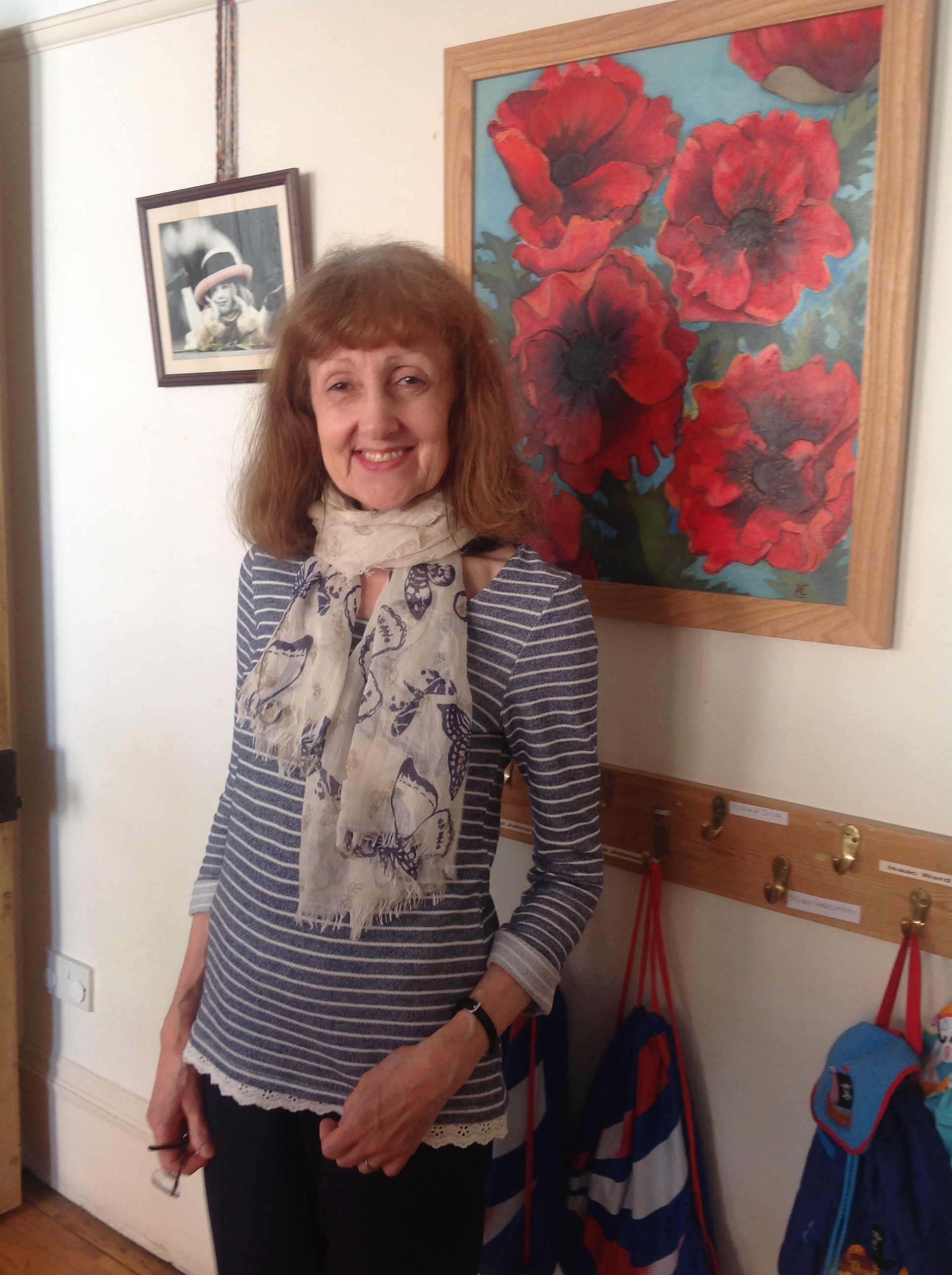 With some difficulty, she knelt on the flowerbed beside me, and took the small spade from my hand. She began digging energetically, scooping the earth from the lower layers into the flowerpot.